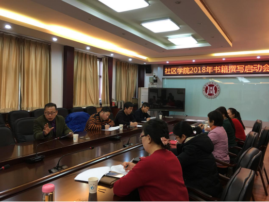 1月22日下午在东二楼会议室召开了“社区学院2018年书籍撰写启动会” 院长王金和以及学院、成人学校共18名老师参加了此次会议。启动会由成人教育研究室主任王建营主持。王主任首先从组织领导、编写时间安排、编写任务分解、编写要求等方面进行了详细解读。柏静老师对三本书籍框架的搭建及实施提出了要求。