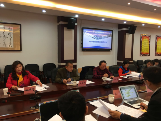 该子课题的研究是将对不同群体市民的继续教育现状和需求开展问卷调查及个别访谈,本次来到大兴社区学院主要是进行前导性研究,了解大兴区新型职业农民、新市民以及残疾人的整体情况。首先王金和院长致欢迎词并介绍与会成员,他代表学院对各位专家一直以来关心支持学院科研工作、并在百忙之中亲临调研交流表示衷心的感谢。成人教育研究室主任王建营介绍新市民情况和残疾人情况,三农工作办公室主任胡长余介绍新型职业农民情况。课题组长汇报课题成果,刘俊梓老师的“新型职业农民培育对策研究”和温雪老师的“大兴区试验点新市民素质提升对策研究”两个课题。